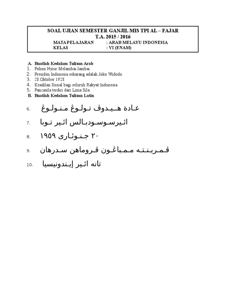 Soal ujian arab melayu kelas 6 semester 1. Check spelling or type a new query. Maybe you would like to learn more about one of these? We did not find results for: